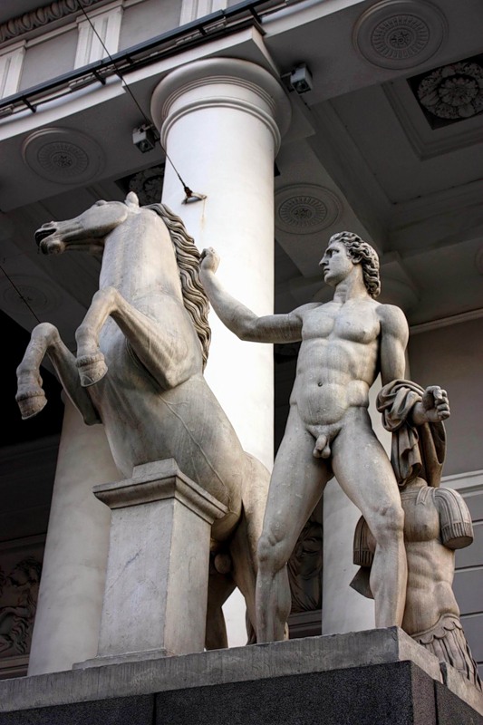 Интересные скульптуры братьев Диоскуров на Исаакиевской площади в Санкт-Петербурге были созданы в 1912 году знаменитым берлинским мастером Э.Ф. Энке, и на протяжении полутора лет украшали крышу здания посольства. По мнению специалистов, Исполинские укротители коней играли огромную роль в